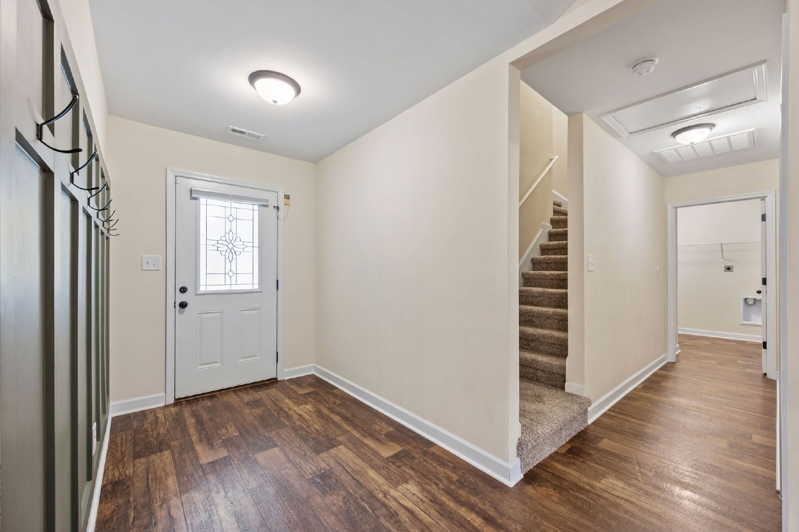 An attached two-car garage provides direct access to a dedicated laundry room for added convenience.